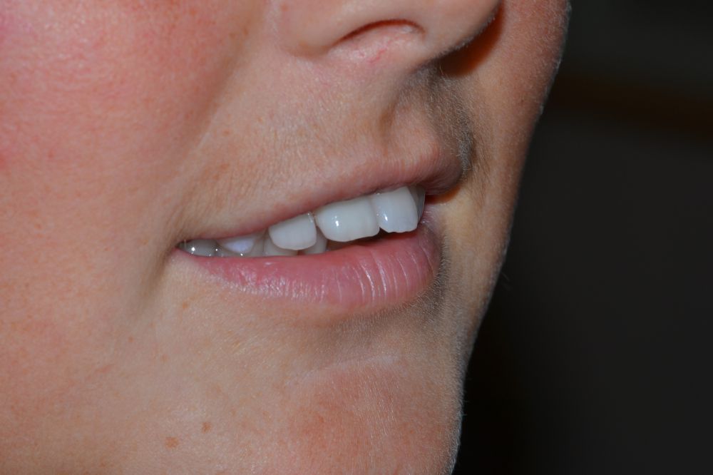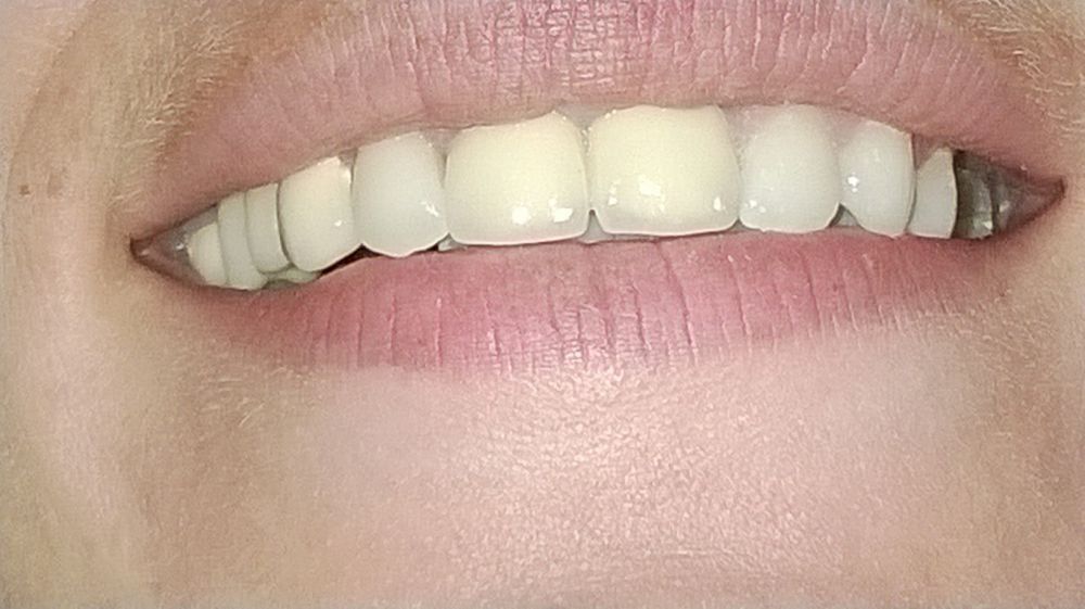 Elszíneződött fogak maszkolása, közvetlen a ragasztás utáni fényképpel